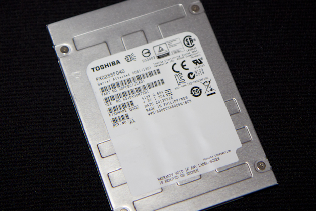 The first thing you notice before you even crack open the Toshiba PX02SS is the size. Unlike the 15mm HGST SSD800MM, the PX02SS looks and feels tiny in its 7mm case. The Toshiba, at 70g, weighs less than half the HGST (164g).