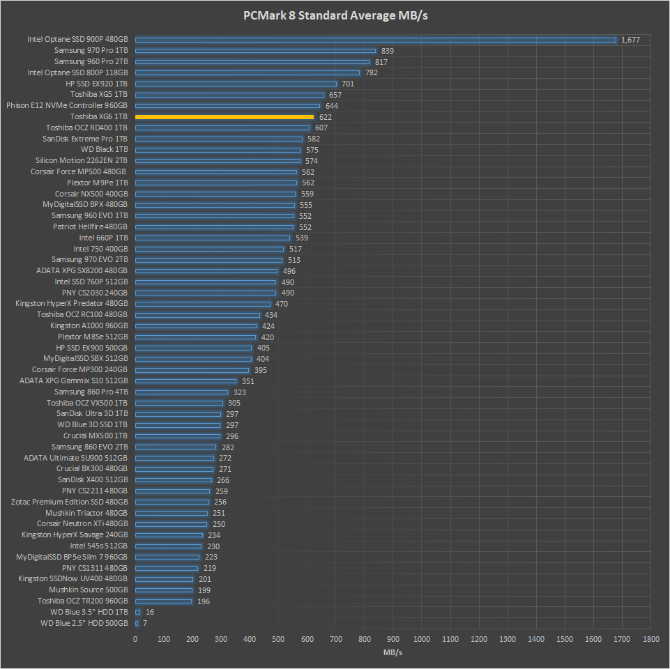 Our Storage 2.0 result of 5087 marks and 622MB/s is very good and shows well as a top tier result in the chart below. Worthy of mention, however, is that the Toshiba XG5 placed just slightly above it.