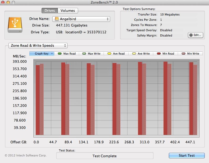 Here we see much the same with ZoneBench 2.0, where the different transfer speeds associated to file sizes are monitored: