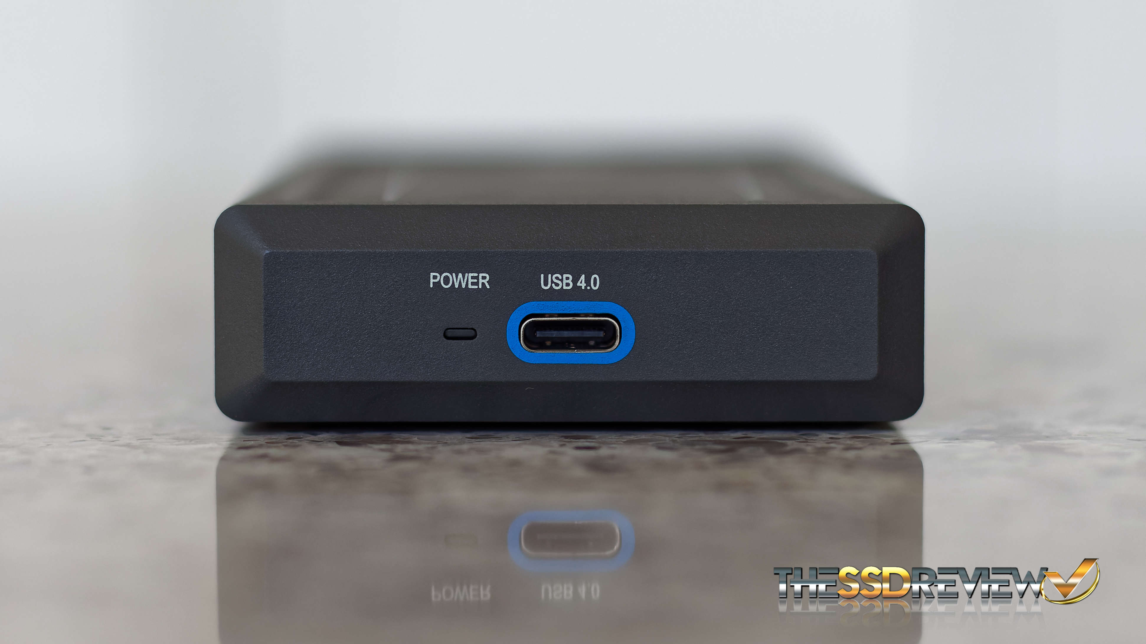 The ProGrade Digital PG10 USB4 Portable SSD requires only 15w of power which is supplied through its data cable. There is a ‘power sensing’ LED, as shown to the left of the Type-C port in the photo above, that glows green when there is 15w power and yellow if power falls below that.