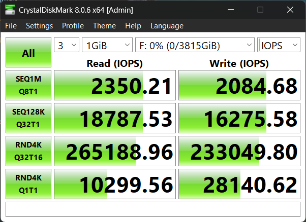 Crystal Disk Benchmark is used to measure read and write performance through sampling of random data which is, for the most part, incompressible. Performance is virtually identical, regardless of data sample so we have included only that using random data samples.