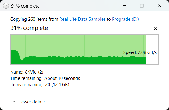 So…where we might not normally do sustained write performance for consumer level SSDs, we threw a folder of 8K files totalling 170GB at the PG10: