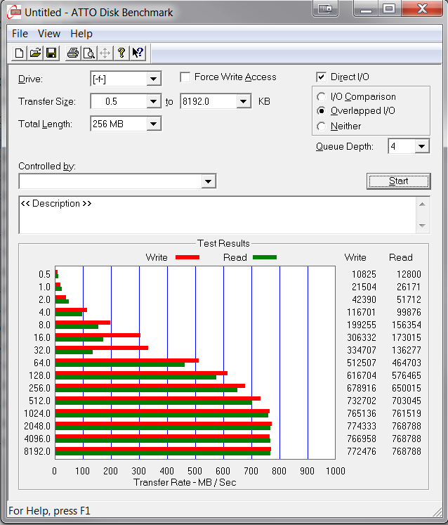 Initial ATTO performance is just below manufacturers specifications but these scores are still very impressive. This is a great start and makes us wonder how the Data Fusion will fare when testing with incompressible data.