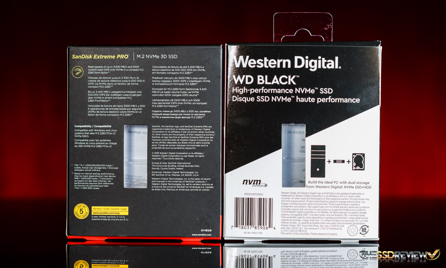 The packaging hasn’t changed that much from the first generation WD Black. This can be an issue for those looking to get the correct version when shopping online. The main differentiator for their second gen WD Black is the writing in the bottom left of the package that states the sequential read speed. Besides that, there is now a preview on the backside that allows you to see the SSD within. As for the SanDisk Extreme Pro, it’s very similar to the SanDisk Extreme Pro SATA’s packaging. Since this is the first iteration of an M.2 NVMe Extreme Pro and the packaging so obviously shows the drive on the front, it would be quite hard for consumers to mistake the SATA model for the latest M.2 model.