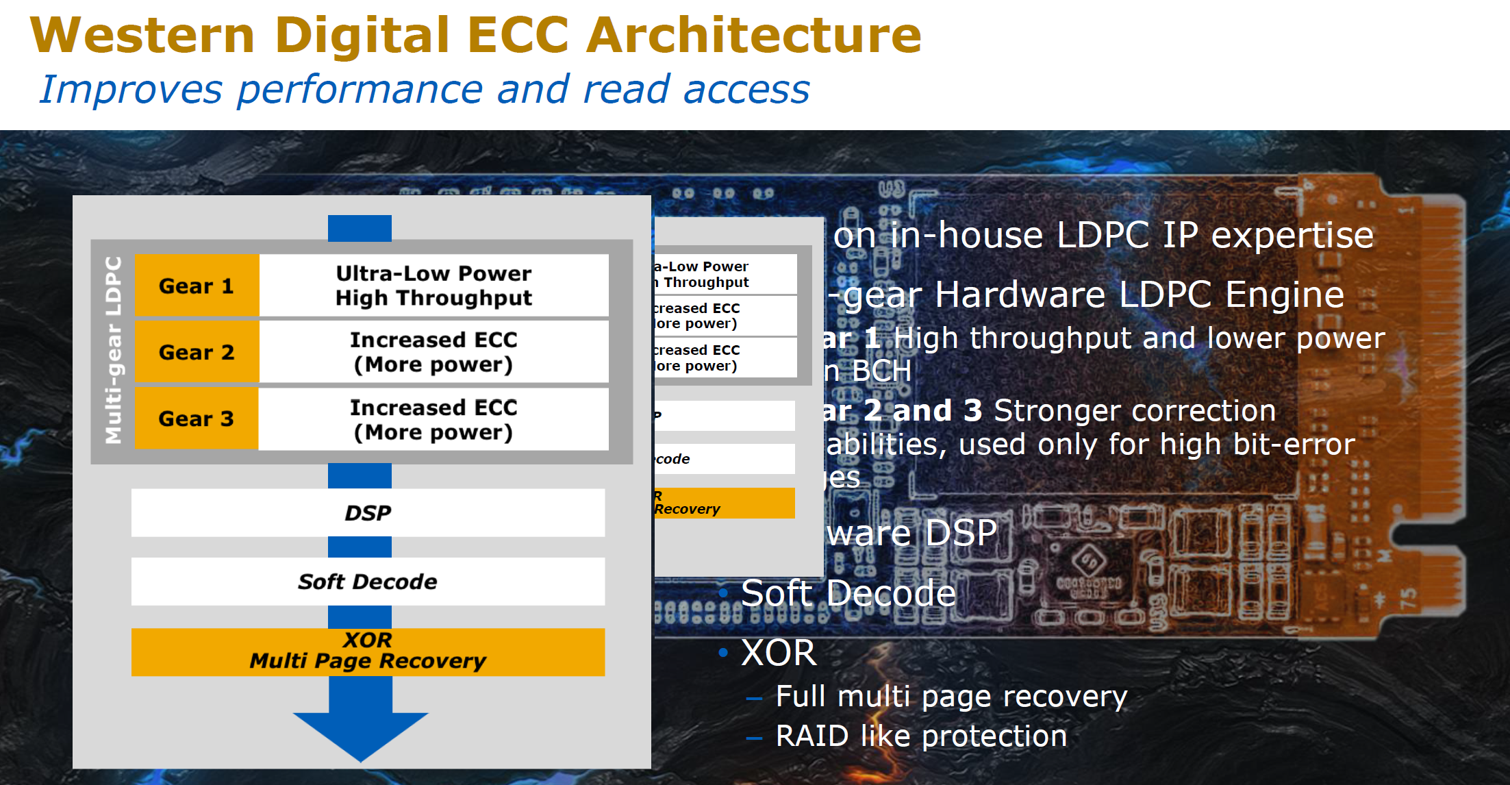 Additionally, the use of Multi -Gear LDPC and Hardware ECC provide full SRAM and DRAM bit correction. Over the lifespan of the SSD, gear 1 will be utilized to correct errors and will be the fastest and most efficient, however, when the SSD reaches near the end of life it may start to use gears 1 & 2 as well as other methods to ensure your data is read correctly every time.