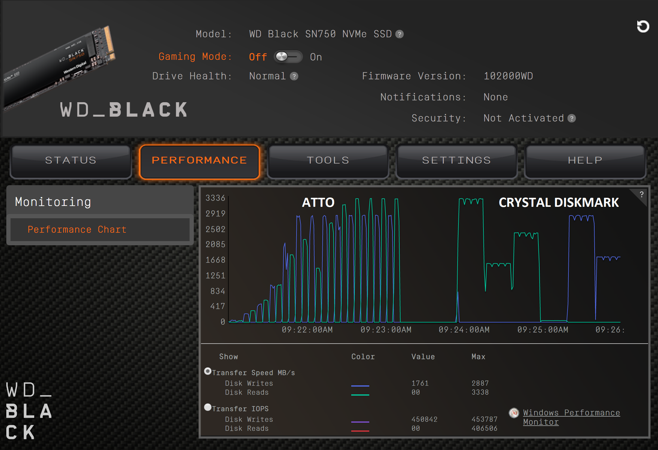 As with many SSDs today, the WD Black SN750 has a free copy of their SSD Dashboard available for download (click the title). The Dashboard has had somewhat of a face lift and has a very attractive interface, allowing users to monitor SSD capacity, life, performance, update firmware, temperature and a number of other features.