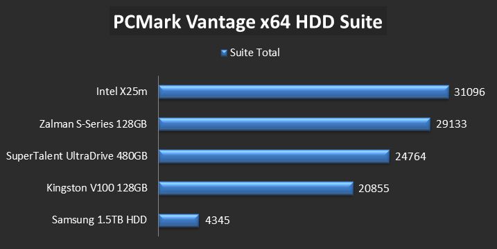 We can see just how much performance has stepped up from the hard drive and how close the Zalman S-Series SSD is to the Intel, still considered by many to be one of the top SSDs available.