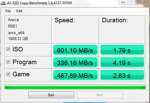 The Areca documentation is pretty awful, giving the briefest of descriptions on card functions, and even those are open to interpretation, leaving me to wonder what the heck they’re actually talking about (I mean, what does this mean, in practice, “The “Read Performance Margin†is for controller to reserve n% read margin during AV stream recording.” Can the card magically determine that you’re system is streaming A/V, versus a very large sequential DB write, and what is the ‘read margin’ it’s reserving n% of??? Do they mean it reserves n% of the read cache you’ve set?