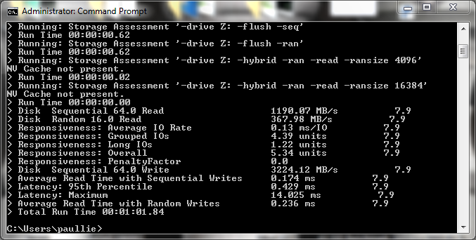 “After that the results do drop off a cliff with the larger file sizes, as we get away from the stripe limitations of the dynamic disk.”