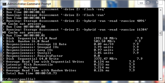“After that the results do drop off a cliff with the larger file sizes, as we get away from the stripe limitations of the dynamic disk.”