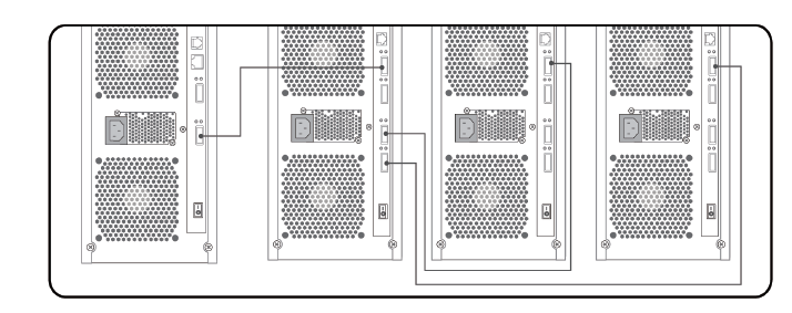 The bottom two ports are expander ports which will allow the user to connect to SAS/SATA target ports, other expander ports, and to SAS initiator ports. The enclosure also supports daisy-chaining of up to 8 enclosures! This allows for excellent scalability and the opportunity to expand the capacity of the subsystem at any time. Here is a nice graphic that shows one connection scenario: