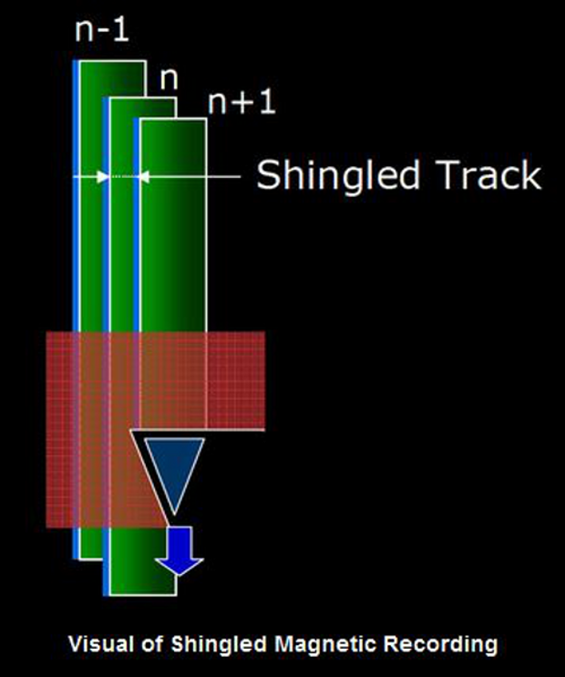 Shingled Magnetic Recording (SMR) was named after roof shingles. With SMR, relatively wide tracks are written to the disk and subsequently written data tracks partially overlap the previous ones, similar to the manner in which roofing shingles are applied. With careful design and execution, SMR is expected to enable data densities as high as 3 trillion bits per square inch. It is currently the plan-of-record for next-generation products across the industry.