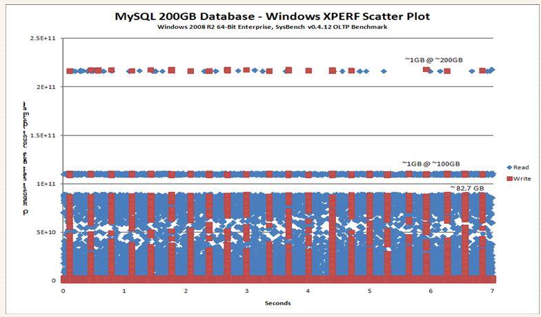 The key to this technology is understanding what to cache and when. Automation is extremely important, as constantly monitoring and adjusting the cached data manually would be far too time consuming and involve human interaction. LSI has come up with a software algorithm that detects which application data is most commonly accessed. The data isnt treated as individual files but as data hot spots. The most frequently accessed data will be tagged as Hot data and copied to the flash layer of storage (SVCD). This also helps with the longevity of the SSD by moving only the hot application data to the SSDs, eliminating unnecessary writing. When that Hot data is accessed it will be read from, or written to, the SSD to increase the performance. As you can see from the graphic below, the typical database application I/O profile shows read and write IO activity concentrated in specific disk volume regions. These are the high use regions that are prime candidates for SSD caching.