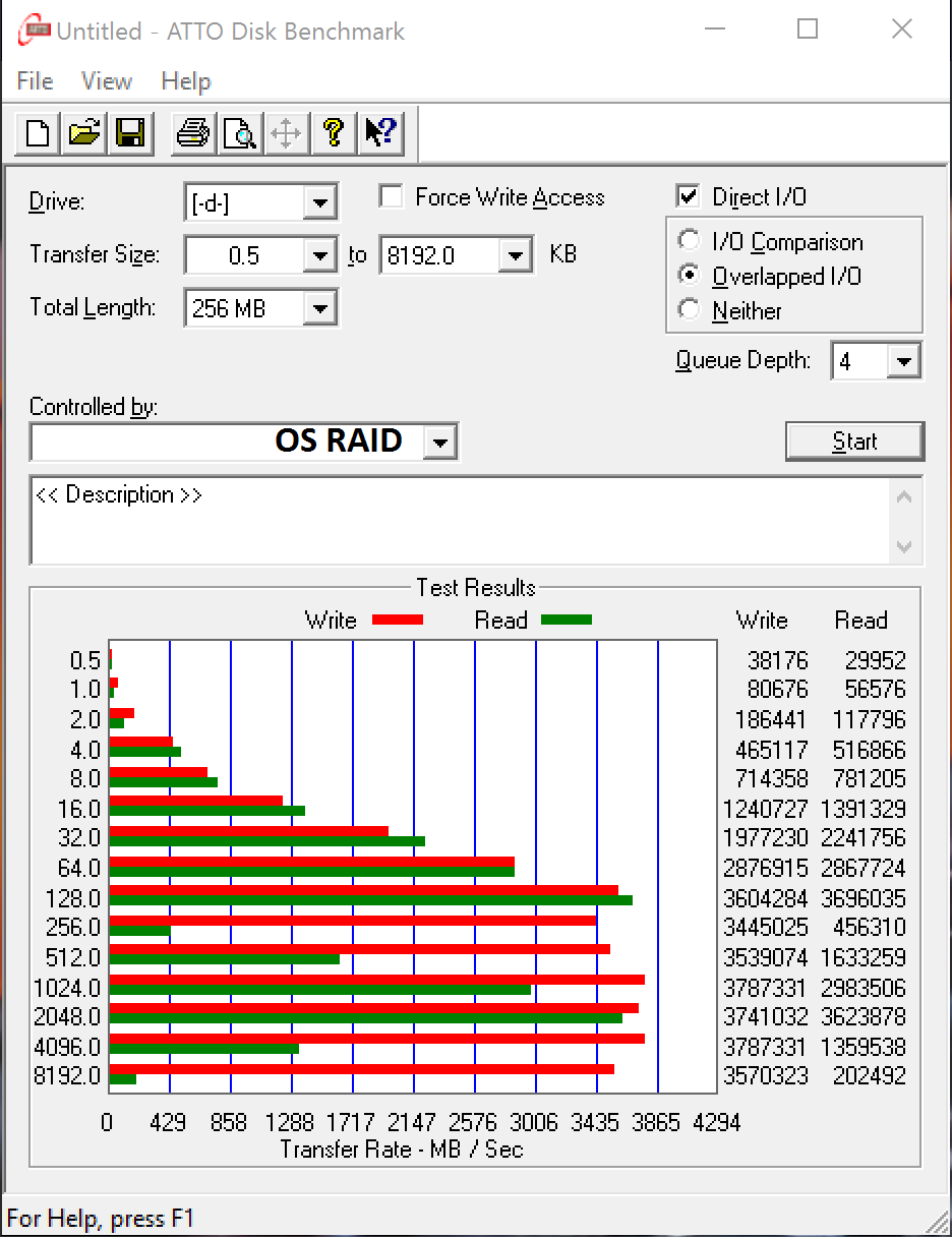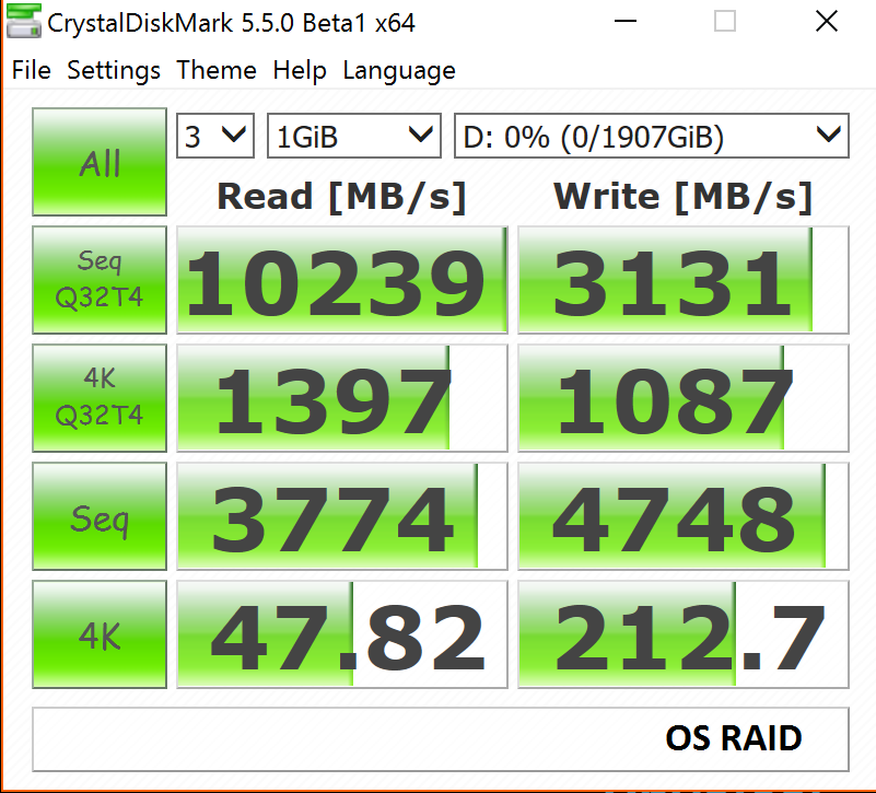 It is a bit amusing that, while the RD400 OS RAID reached an incredible 10.2GB/s and scaled very well, the better performing device in this case might be the result on the right… depending on the task at hand.