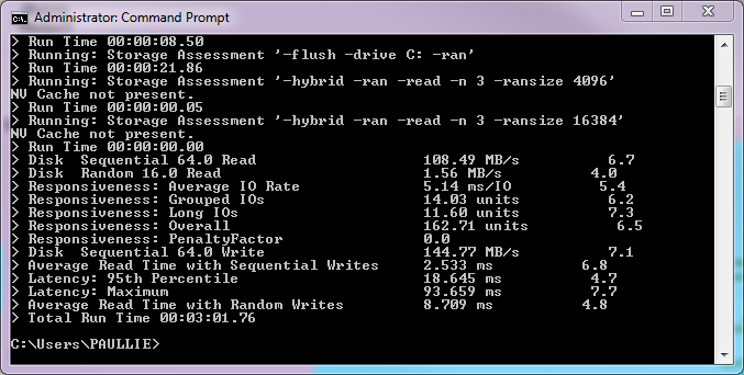 - In DOS, type winsat disk and hit enter.