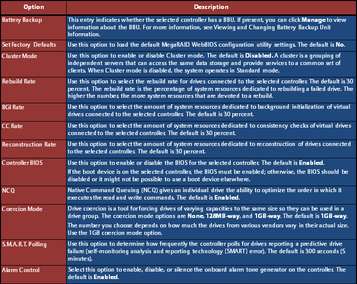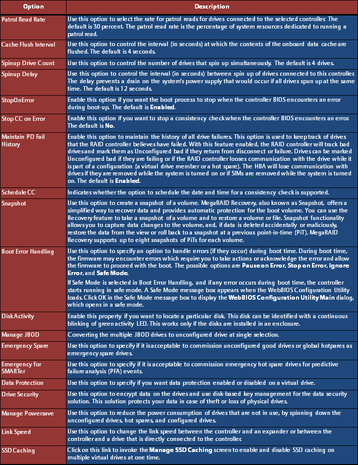 MegaRAID WebBIOS CONTROLLER PROPERTIES