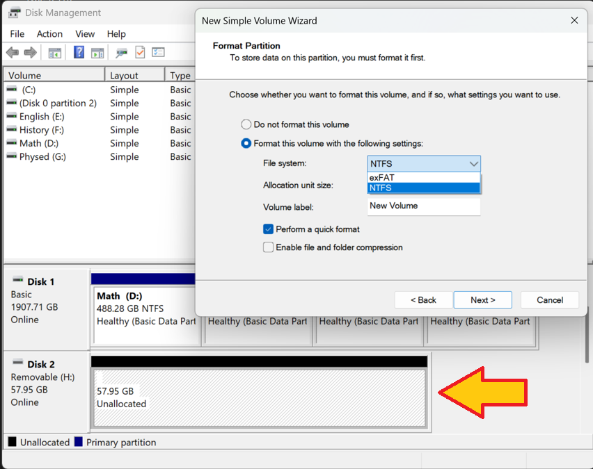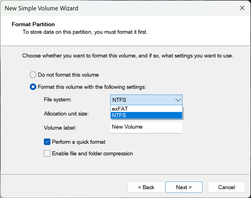 Last but not least, how do we know what ‘file system’ to create, NTFS or exFAT (formerly FAT32). What is a file system? Think of your SSD before it is formatted as a large field and then consider it a well mapped city once it has been developed, initialized, and formatted. In the city, you have plenty of storage locations and can find each through well mapped out directions. That is what formatting does.