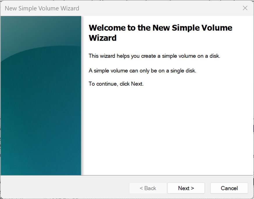 So let’s Initialize our SSD through the New Simple Volume Wizard, the SSD being wrongly named a ‘Disk’ still by windows. An SSD is definitely not in any way a disk, disk being identified as a a thin circular object: such as. a. usually disc : a phonograph record. b. : a round flat plate coated with a magnetic substance on which data for a computer is stored. Remember now. To get here, simply right click on the Windows Icon or type .Disk Management .into your Search Window, right click on your unallocated SSD and creat a new simple volume to get you on your way!