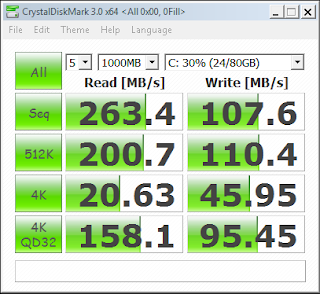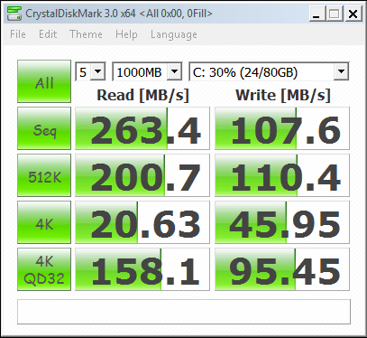 I am also a performance nut and rely heavily on Crystal Disk Mark as it provides one with both large sequential as well as 4kb random performance evaluations for your SSD. Two weeks after playing around with my system, I observed a large drop in the performance of my SSD. I wish I had kept the original result so I could post it here but no fear, I will have a test for you to try later on. Here is what Crystal Disk Mark looks like:.