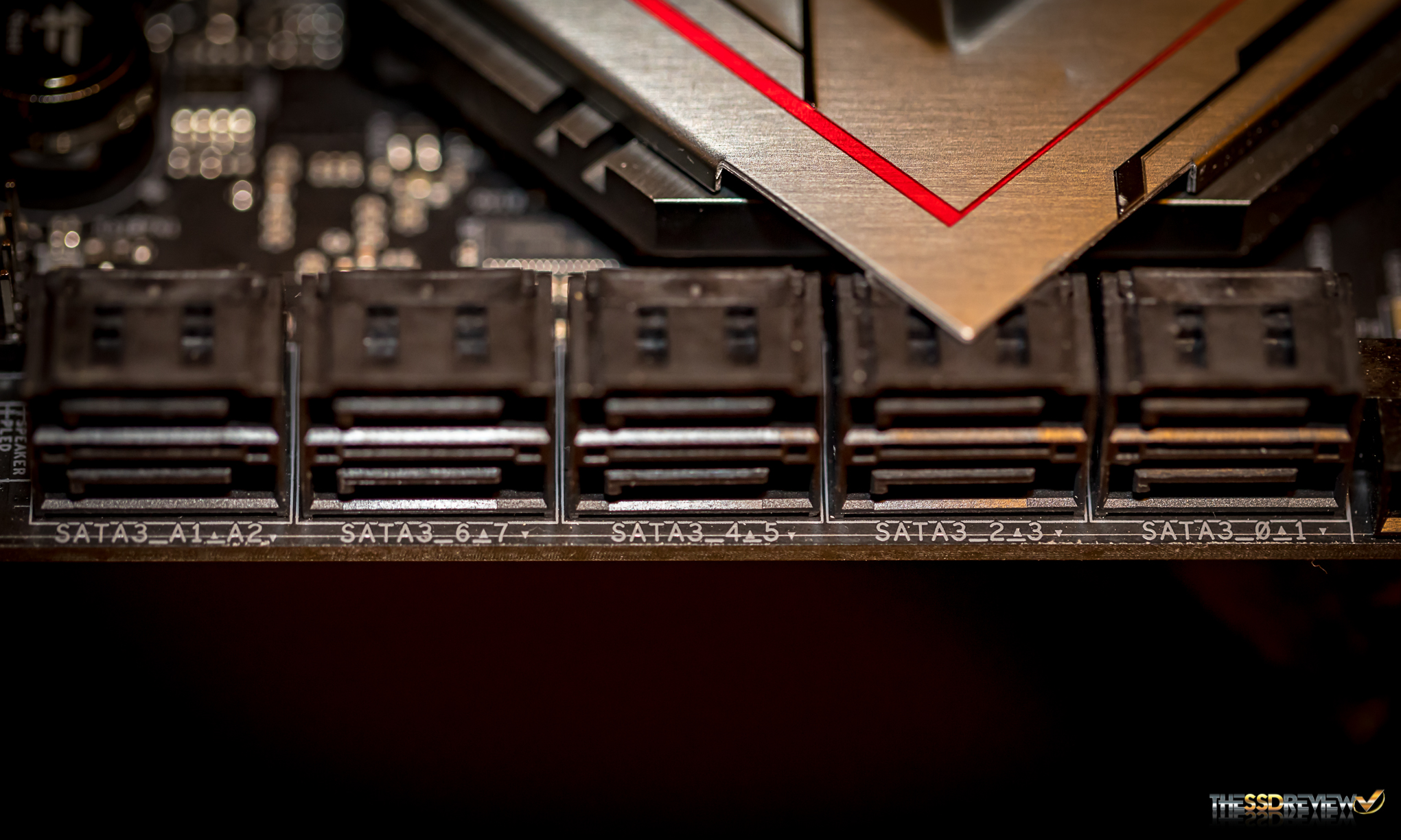 Since SSD installation via PCIe and M.2 slots have become more common, we don’t see this problem as much but it merits discussion for those still using SATA 3 SSDs. Every Intel-based motherboard has Intel SATA ports that travel directly to the chipset via the 6Gbps SATA bus, and alternate ports that first make their way through a SATA controller (ASM1061) and then through a PCIe Bridge Controller (ASM1145e) before reaching that same location, these chips being the case with our ASRock X299 Fatal1ty motherboard. These ‘alternate ports are much slower and can easily be recognized by the ‘A1’ and ‘A2’in this picture of our ASRock X299 Fatal1ty: