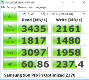As this AS SSD result demonstrates, the Z370 has the advantage in both read and write throughput, unless of course, you are still looking for that extra few MB/s in your low 4K random write speeds.