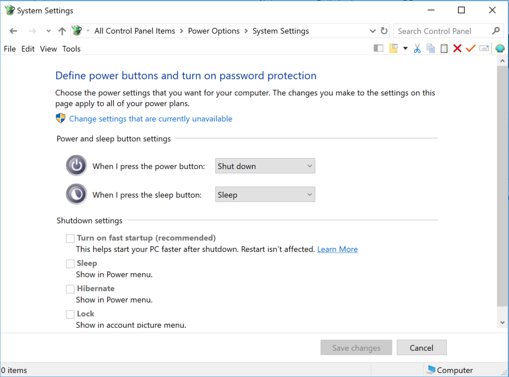 Windows has a fairly well hidden option to allow you to have a quicker startup…even with SSDs. Faster Startup can be found by following Start Orc/Control Panel/Power options/Choose What the Power Buttons Do/Click on ‘Change Settings that are currently Unavailable’/ Check ‘Turn on Fast Startup’ and ‘Save Changes.