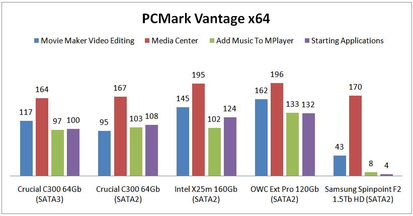 We left the best for last with respect to testing and one will soon see why. The SSD Review uses benchmark software called PCMark Vantage x64 HDD Suite to create testing scenarios that might be used in the typical user experience. There are eight tests in all and the tests performed record the speed of data movement in MB/s to which they are then given a numerical score after all of the tests are complete. The simulations are as follows:.