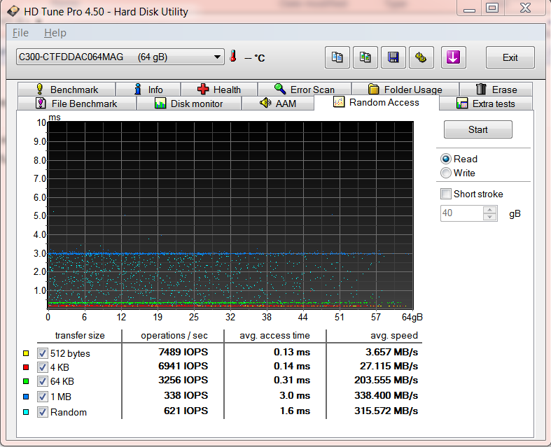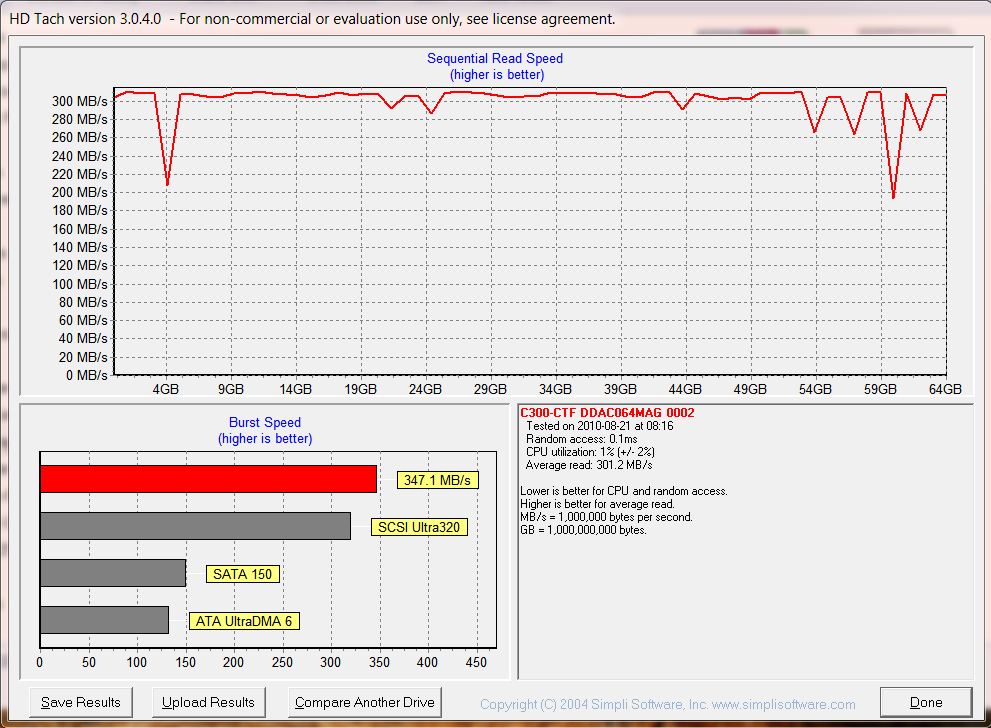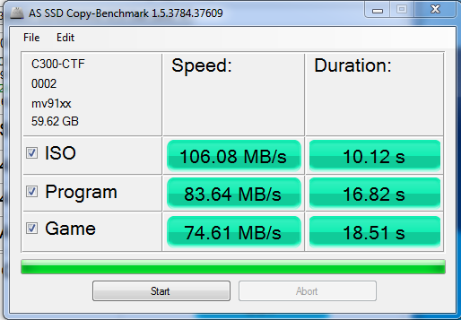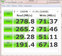 Having looked at these would you believe that the top marks for PCMark Vantage x64 HDD Suit go to the Crucial in SATA 3 mode with 34020 marks? Congratulations Crucial! This was seconded by the OWC with 33042 marks but then, surprisingly enough even in SATA 2, the Crucial beat out the Intel X25 with 31457 marks to the Intels 31096. We were again surprised at this because, if you remember the Disk Copy test earlier on, the Intel prevailed with almost a minute to spare in that test. This, unfortunately for hard drives, is where one can see the absolutely humungous improvement from a hard drive to any ssd. The best score the Samsung could reach was 4345 marks which is still 7 times less than the poorest performing SSD.